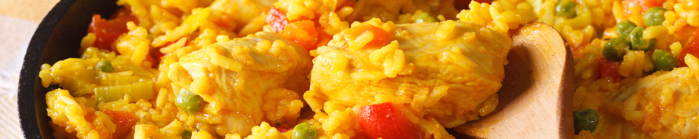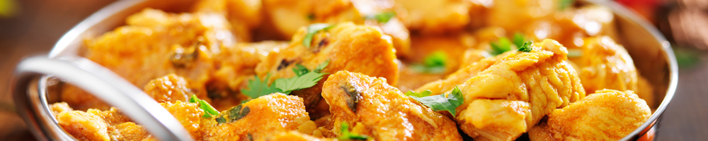 mit hausgemachter Curry-Mangosauce, frischer Paprika und zartem Hähnchen, dazu Basmati Reis
