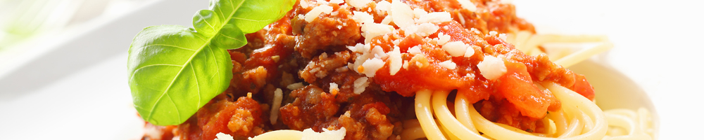 mit Hackfleischsauce, Paprika, Zwiebeln, scharf