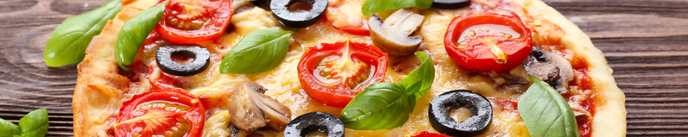 Pizzablech (40x60 cm) mit 2 Belägen nach Wahl (ausgenommen Krabben, Meeresfrüchte, Hühnerbrust, Gyros) jede weitere Belag: 3,50 / 4,50€